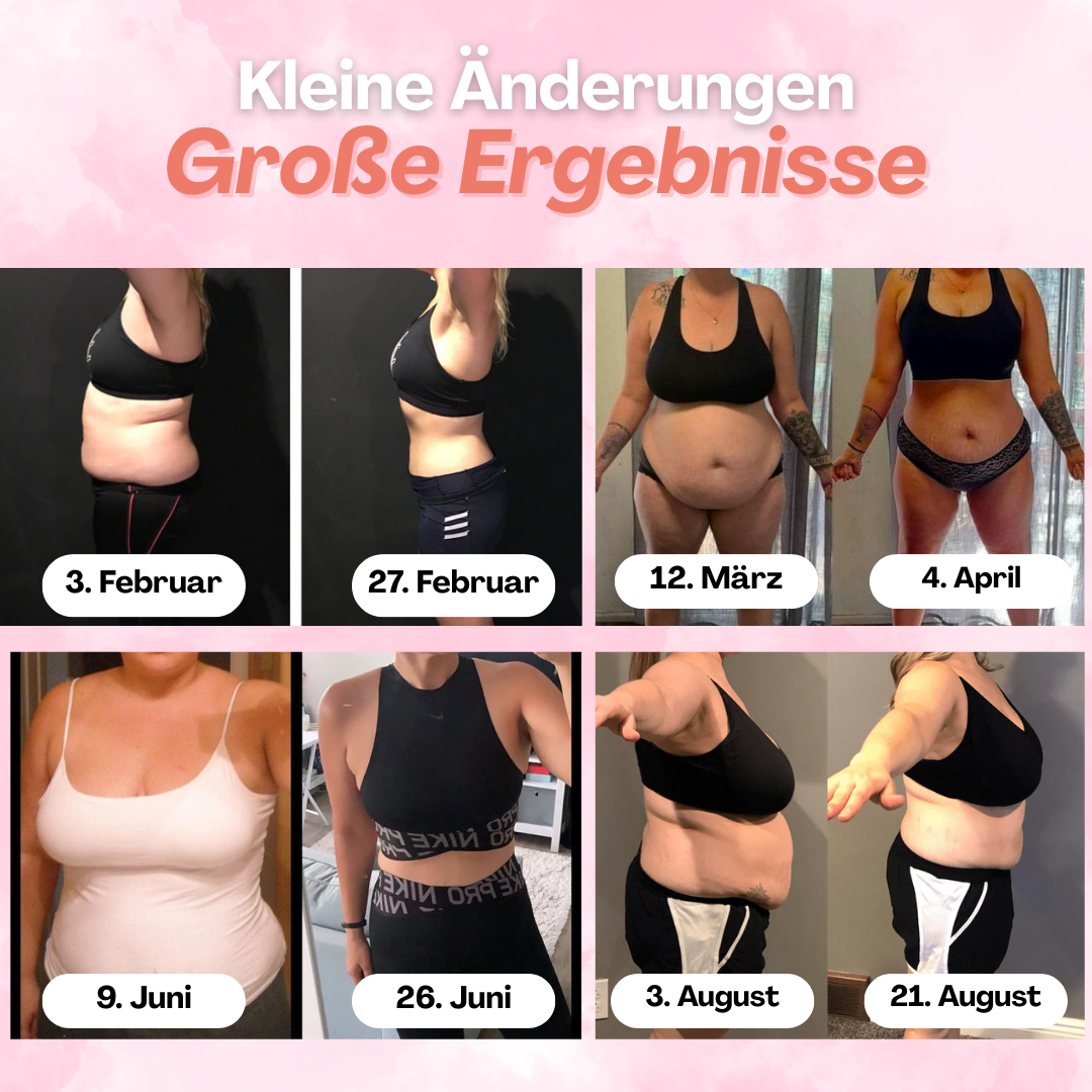 Unsere Kunden berichten von einer Reduzierung des Körpergewichts, des viszeralen Fetts sowie des Taillen- und Hüftumfangs.